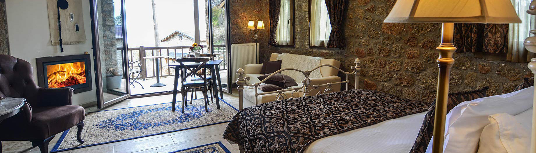 H μαγική και άνετη επίπλωση η απεριόριστη θεα ο συνδυασμός χρωμάτων κάνουν την διαμονή σας στην σουίτα «Ευτέρπη» αξέχαστη Διαθέτει σαλόνι τζάκι l.c.d.,καφετιέρα μπουρνούζια μπάνιο με τζακουζι καλλυντικά priza Και σε αυτή τη σουίτα η ένδυση είναι coco mat.